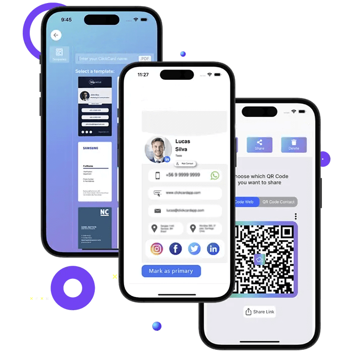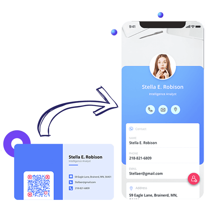 Compartes el código QR o el link de tu tarjeta digital con tus contactos o por medio de redes sociales, herramientas de mensajería o plataformas digitales